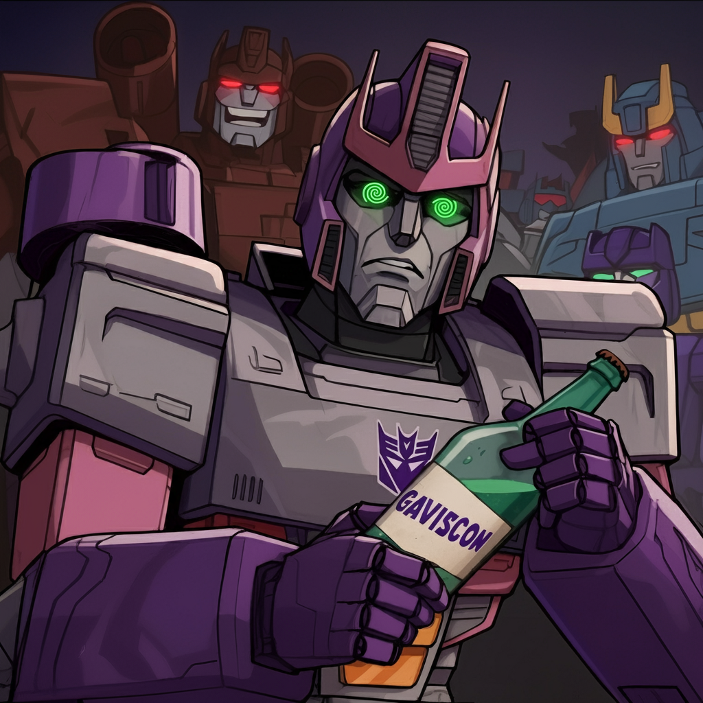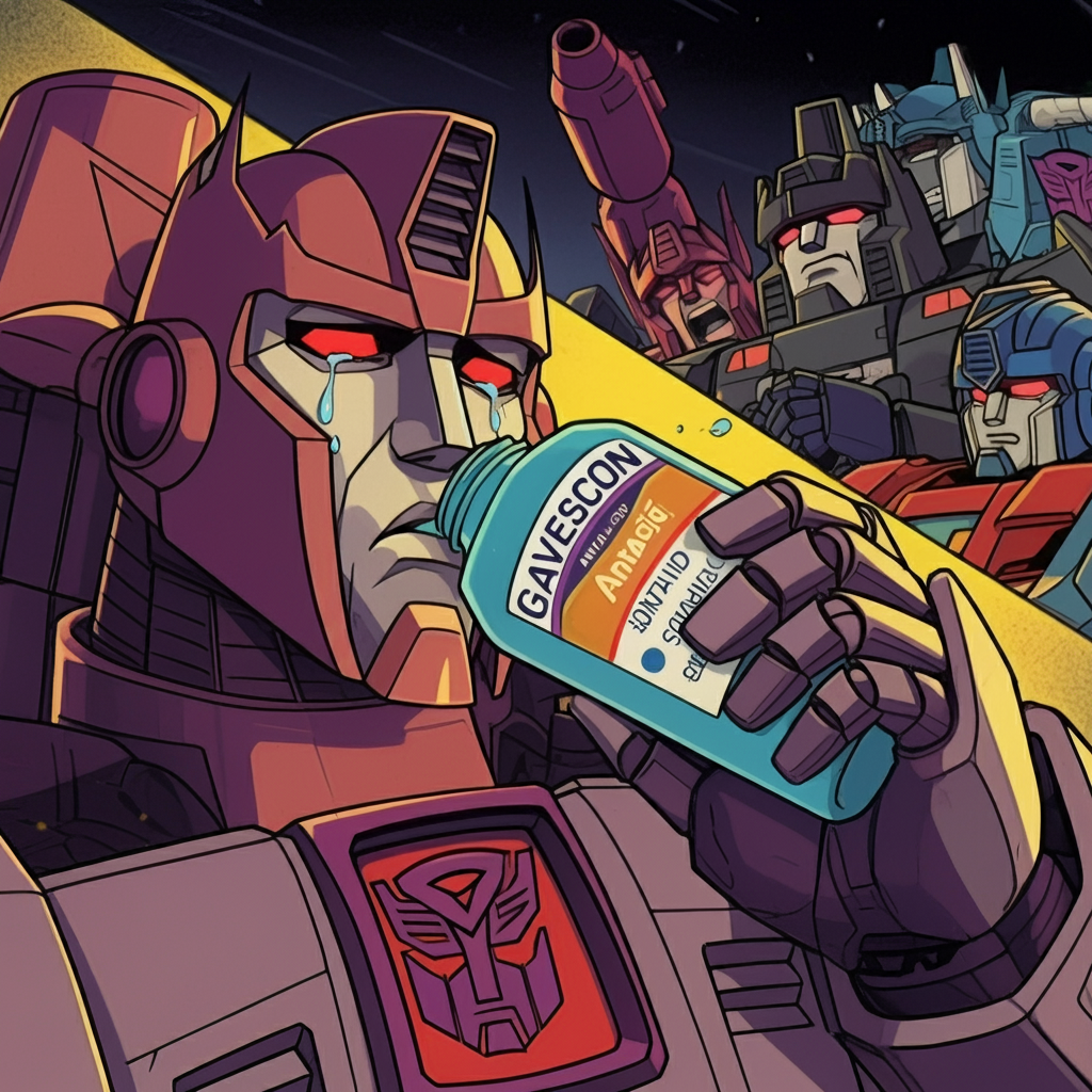 Art of the FolkedGalvatron Gulping GavisconBy EMToast StaffFebruary 9, 2026CommentsThis was the original idea. I thought the idea of Galvatron Gulping Gaviscon was kind of funny. Robots get heartburn too, right?