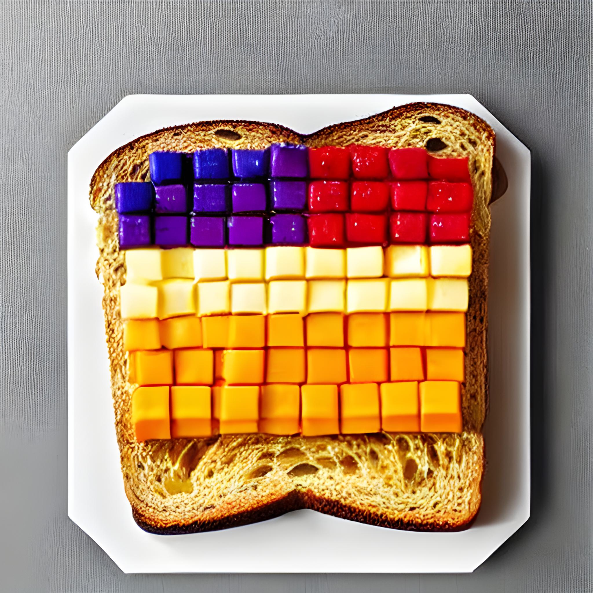 The pixel art depicted two beautiful women, standing side by side. One of them held a slice of toast up…